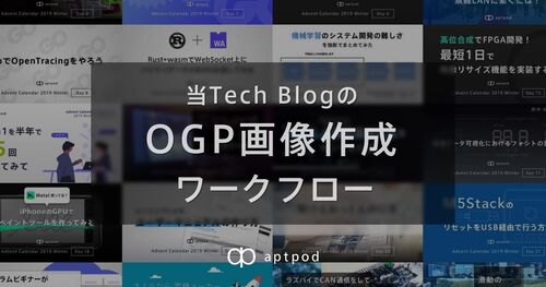 あけましておめでとうございます 。 2020年最初のTech Blogはデザイン室の上野が送らせていただきます。 aptpod Advent Calendar 2019はご覧になっていただけましたでしょうか? まだの方はぜひご一読ください。 今回ですがこのAdvent Calendarで作成したOGP…