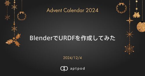 aptpod Advent Calendar 2024 12月4日の記事です。 デザインチームの上野です。 近年、デジタルツインの普及に伴い、建設機械や製造業でROSを用いて3Dモデルを扱う事例が増加しています。 そこで今回はROSで用いられる3DモデルのURDFについて0からBlenderを…