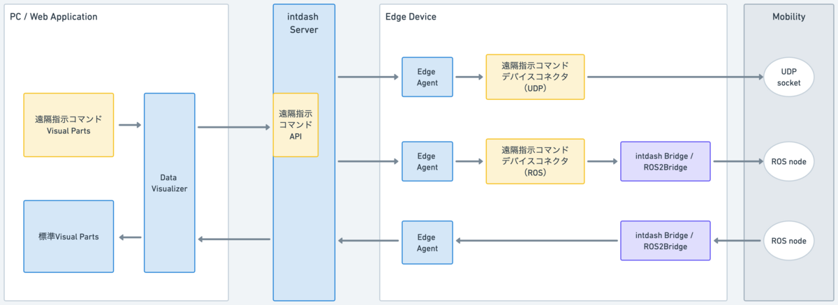 エッジデバイスでサーバーからコマンドを受信してintdash Bridgeに連携します。