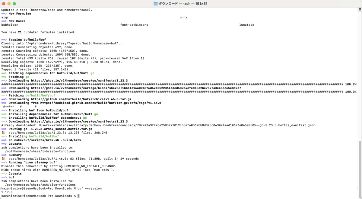 - 動作確認できたら、Buf CLI、ワークディレクトリ、プロトコル定義ファイルは削除しても構いません。↩