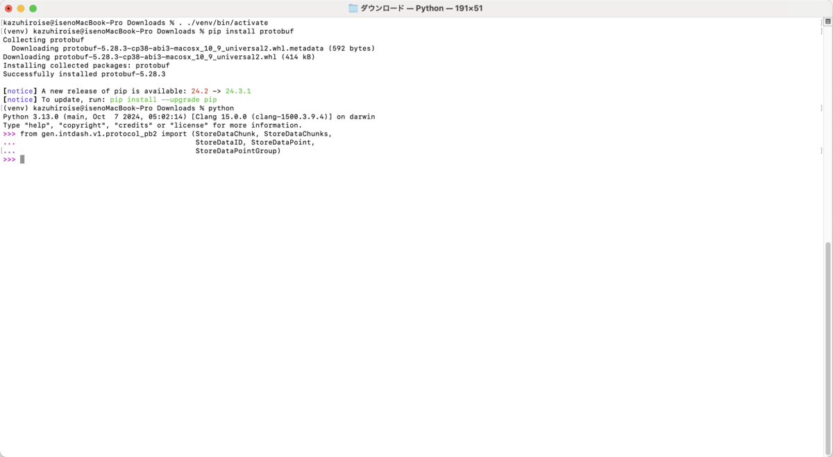 生成したエンコードの実行にはPythonのprotobufパッケージが必要です。