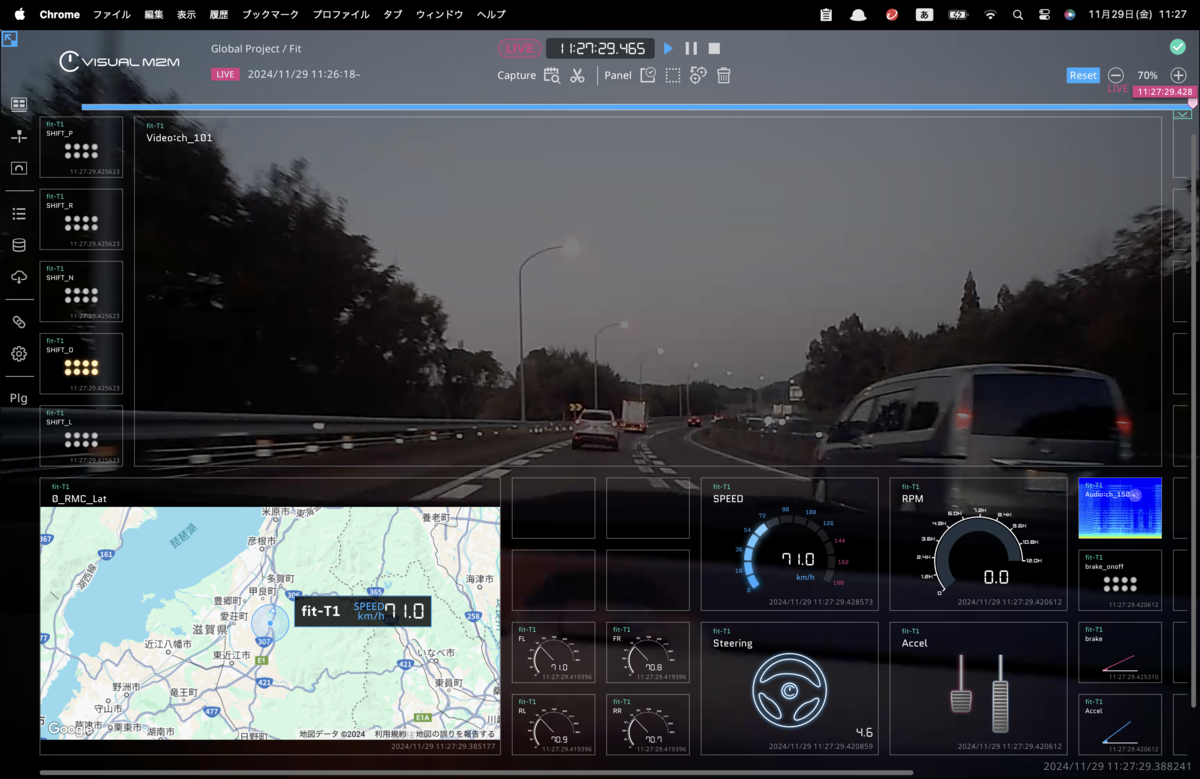 今回は車載エッジのGPS、カメラ映像、CANデータをレイアウトしてみました。