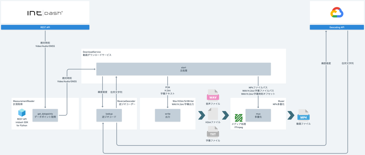 --outdir:出力先ディレクトリ(省略時は./out)--tracks:出力するトラックaudio,video,subtitleを指定(複数可、省略時はすべて)--fps:映像の入力フレームレート(映像出力時、省略時は15)--gmap-api-key:Google Maps API Key(字幕出力時、逆ジオコーディングに使用、省略時は緯度経度を出力)