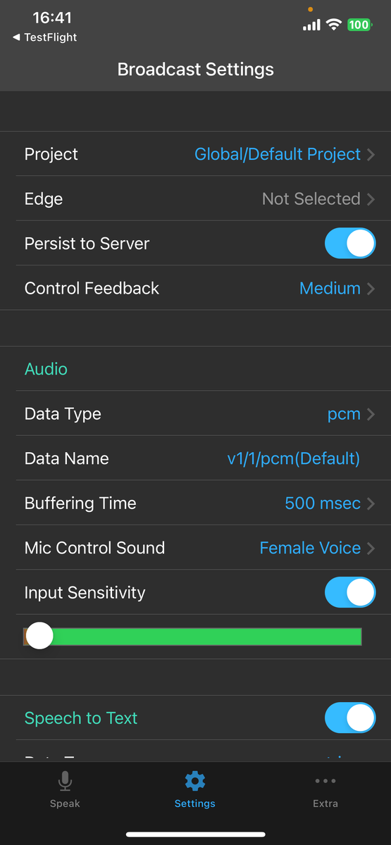 iPhoneアプリ Speak Cast(仮) は音声データを intdash サーバーと送受信します。1
