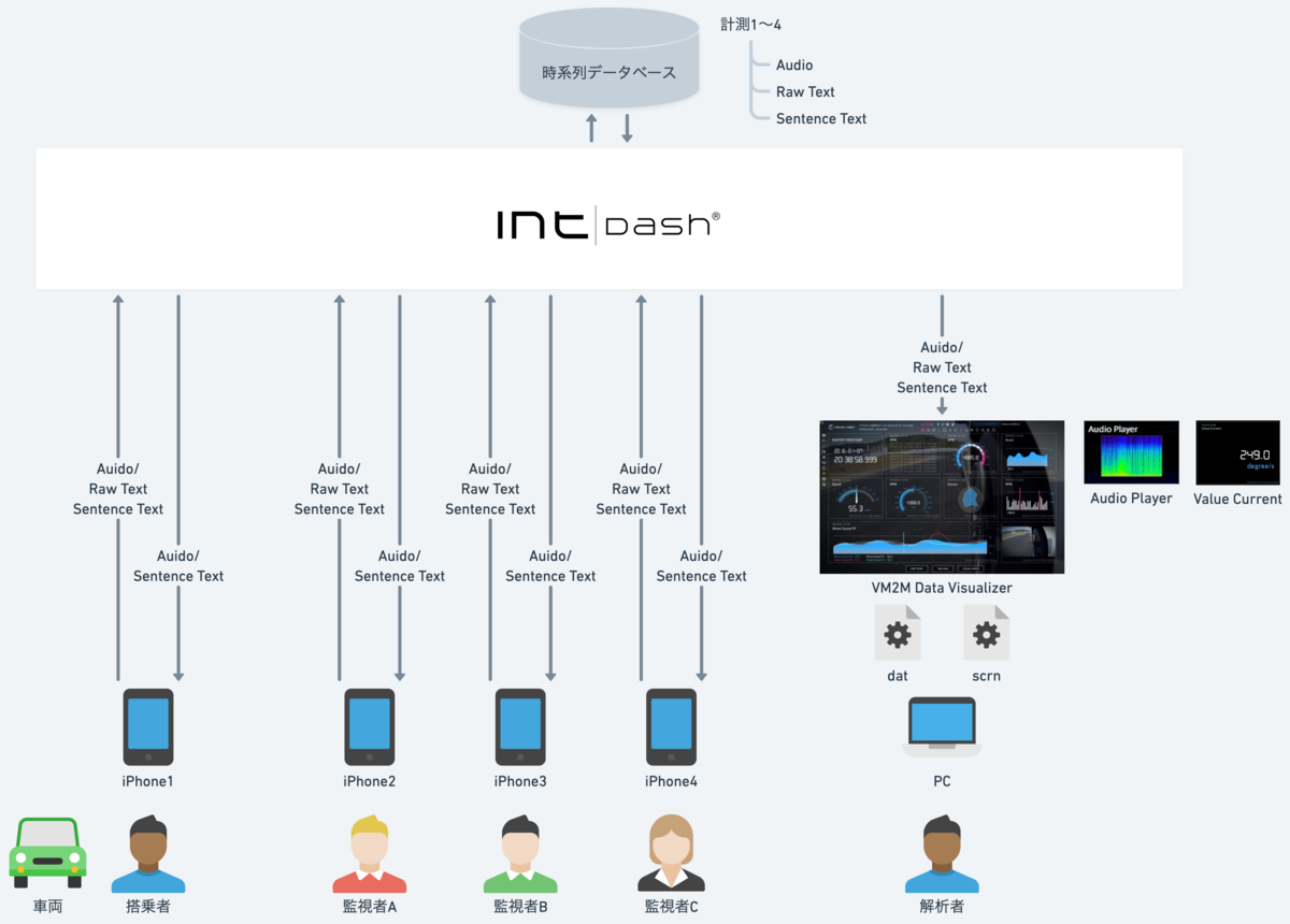 通話ができるアプリは Zoom / Teams / LINE など色々ありますが、intdashで他の計測データと時系列をあわせてデータ保存できるのが特徴です。